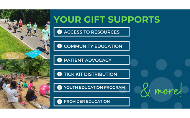 Support our mission to fight Lyme and tick-borne diseases—your donation helps fund critical research, education, and patient support.